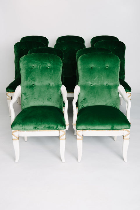 Set of 10 Marge Carson Emerald Green Velvet Dining Chairs