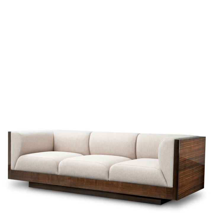 High-gloss eucalyptus veneer, Loki natural upholstery.