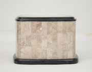 Vintage tessellated stone and marble table base. Beige, taupe and black tones.
