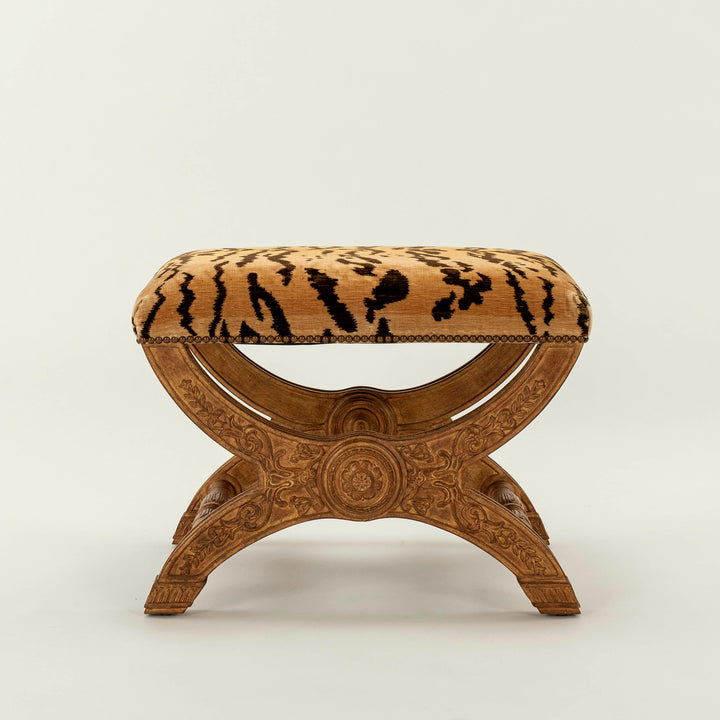 Condition: Sturdy wood frame in excellent vintage condition with surface wear consistent with age and use. Slight marring to cleaned velvet, no stains.