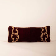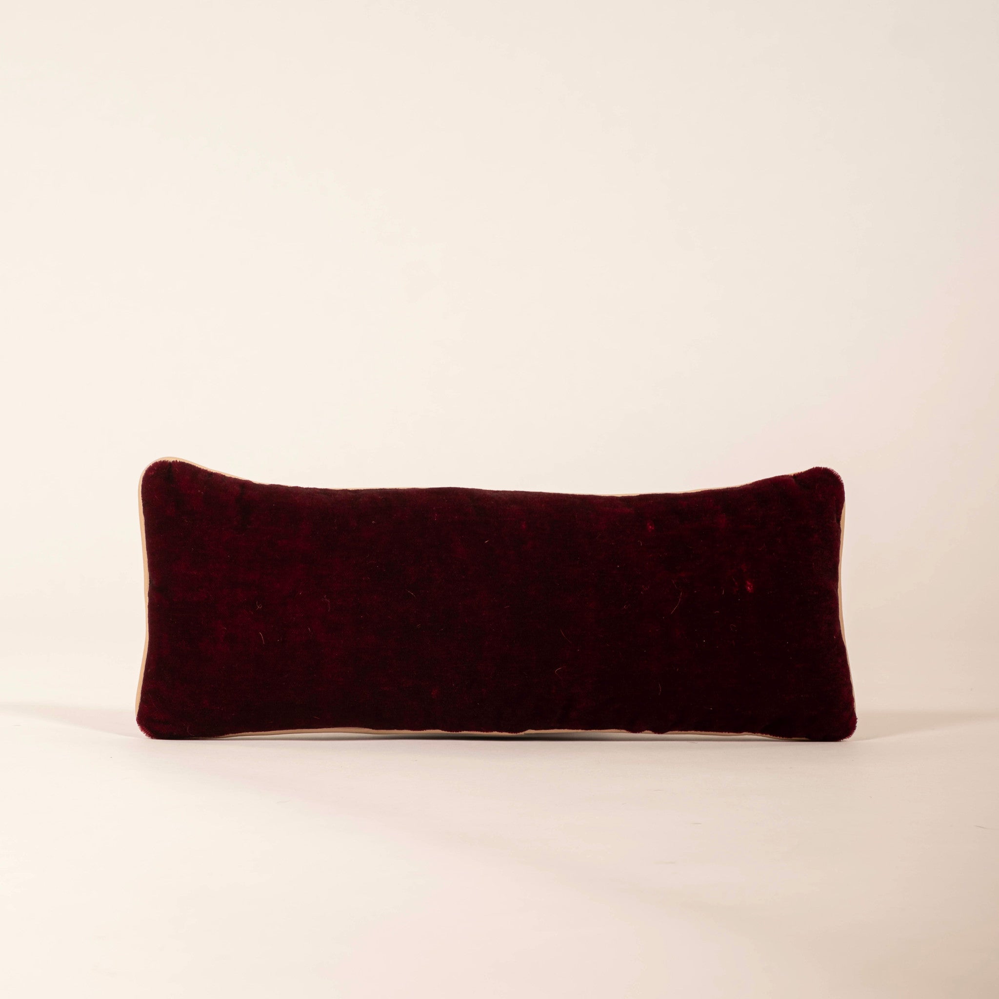 Claret Mohair Vestement pillow with leather trim.
