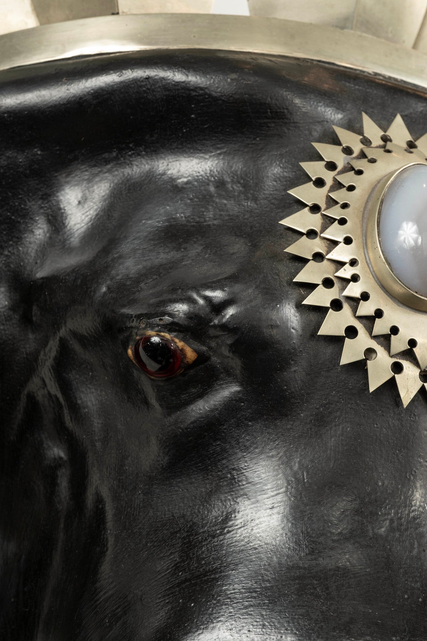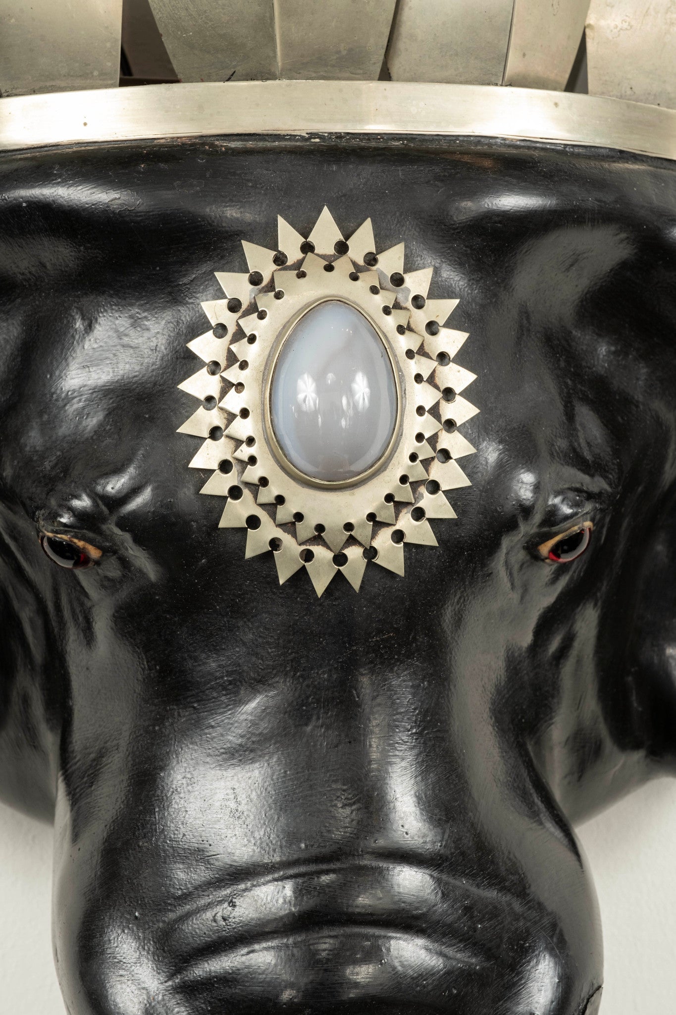 Composite, silver gilt metal, glass eyes, agate stone