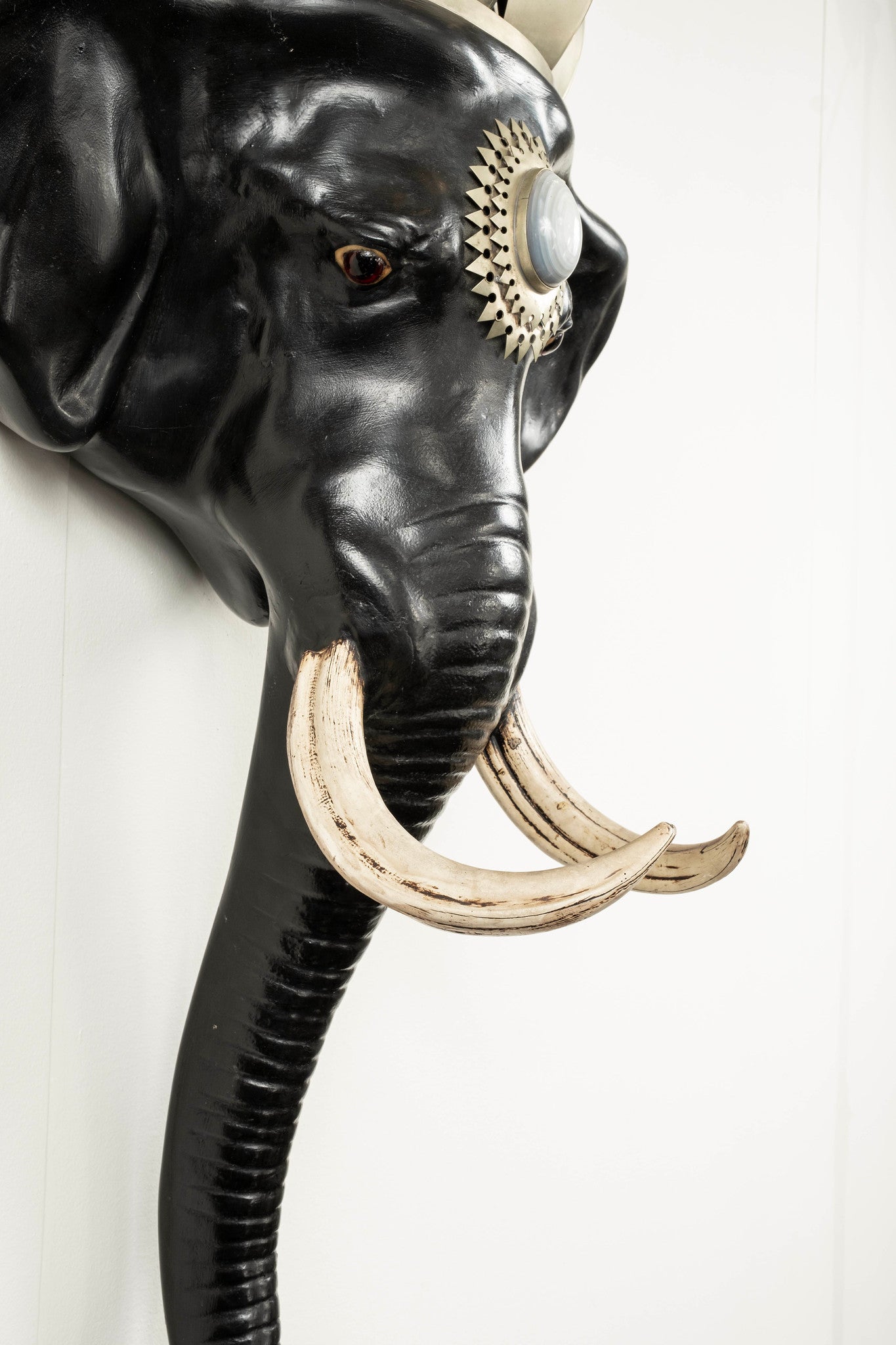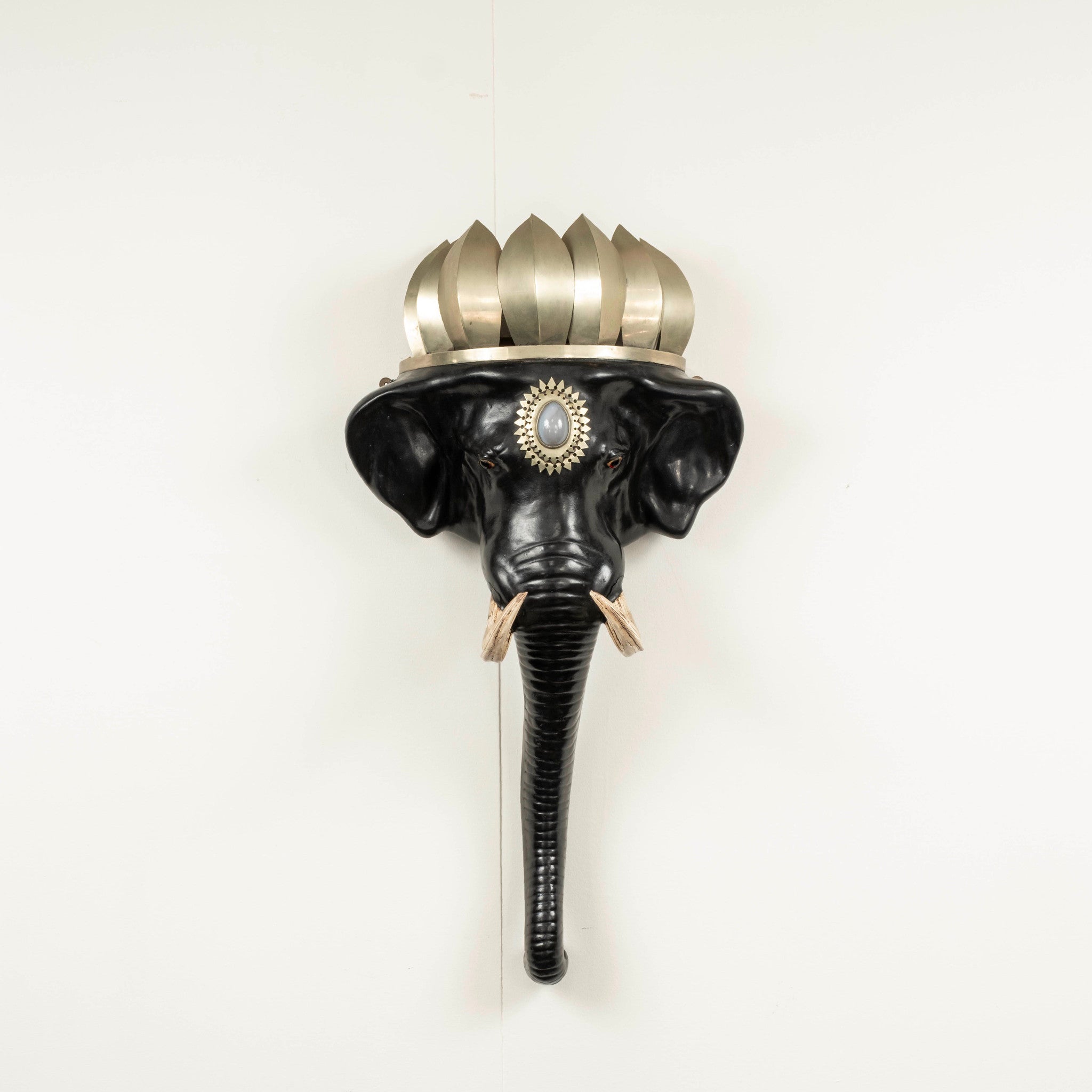 Pair Black Elephant Head Mount Sconces Attr. to Anthony Redmile, circa 1980s