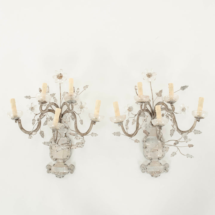 Pair Maison Bagues Style Rock Crystal Urn Sconces
