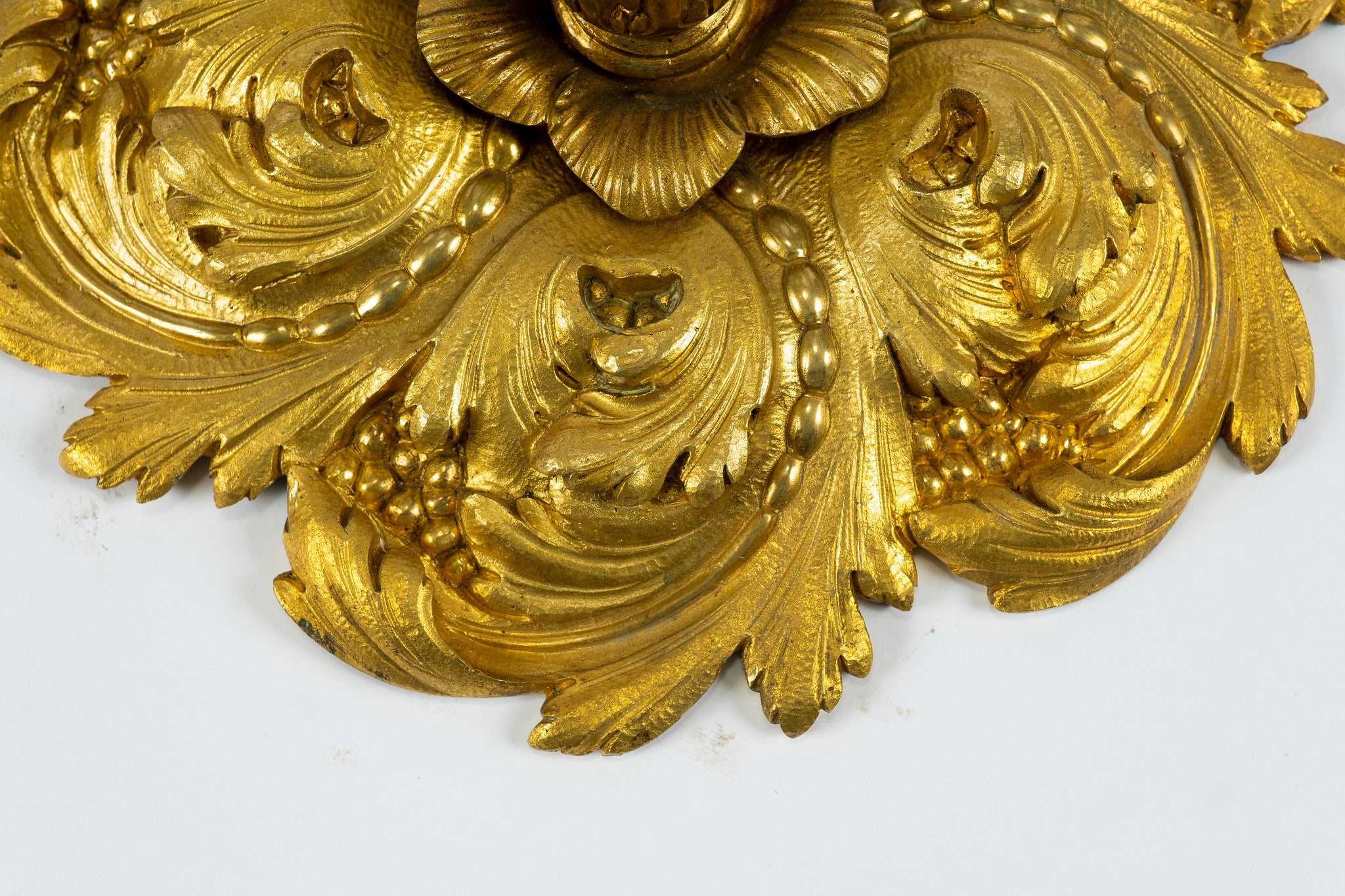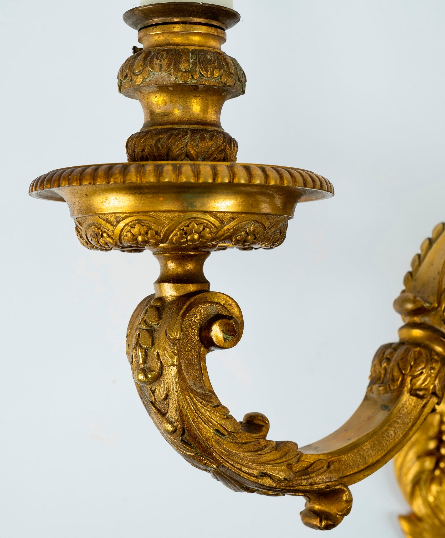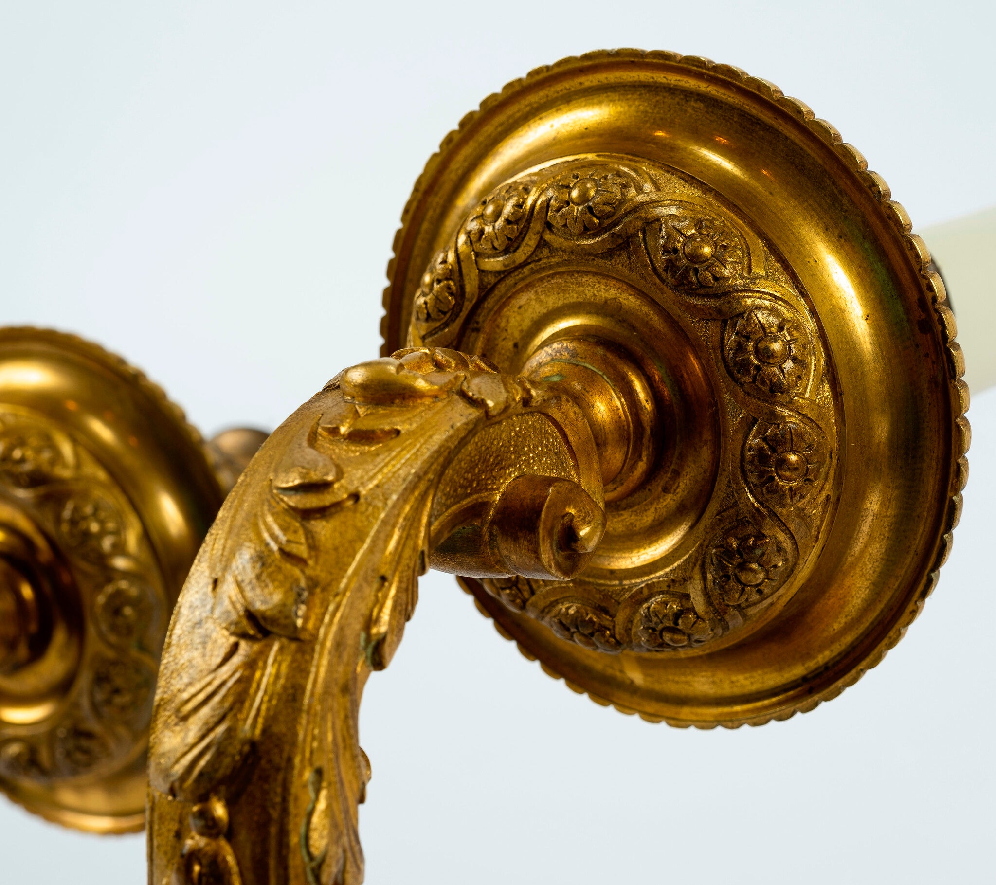 Pair 19th Century Bronze D'ore Three Arm Sconces