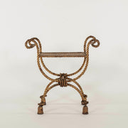 Vintage Italian Gilt Iron Rope & Tassel Bench