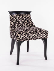 Vintage ebonized slipper chair newly upholstered in a graphic black, white and gray playful geometric velvet.