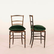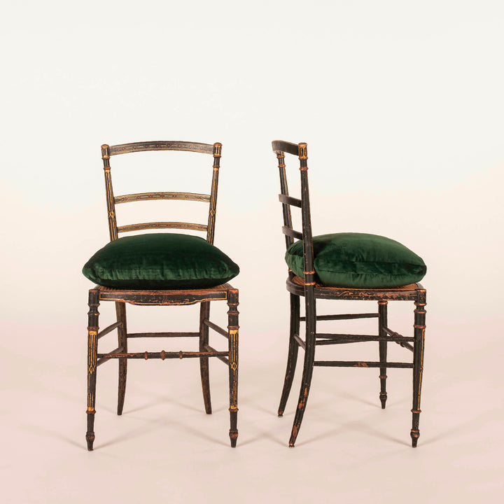Wood: hand turned, carved and hand painted. Woven cane seats.