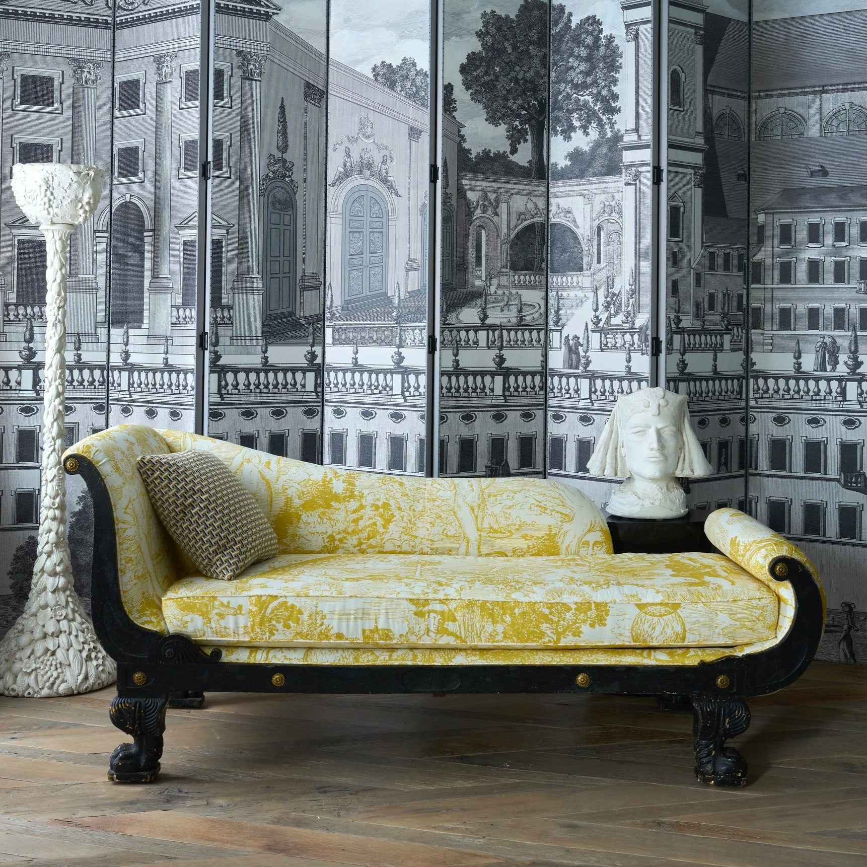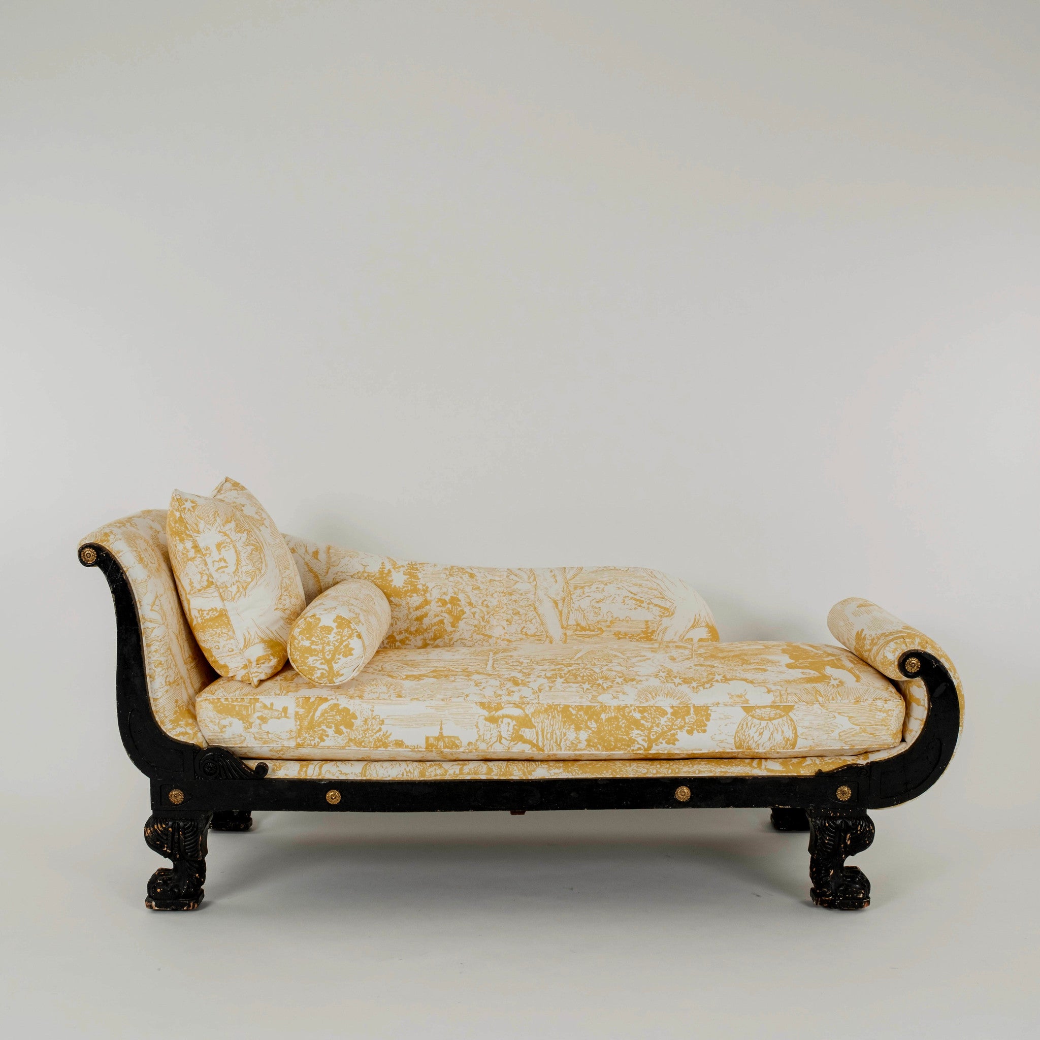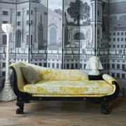19th Century Empire Johnson Hartig Libertine Yellow Modern Toile Chaise
