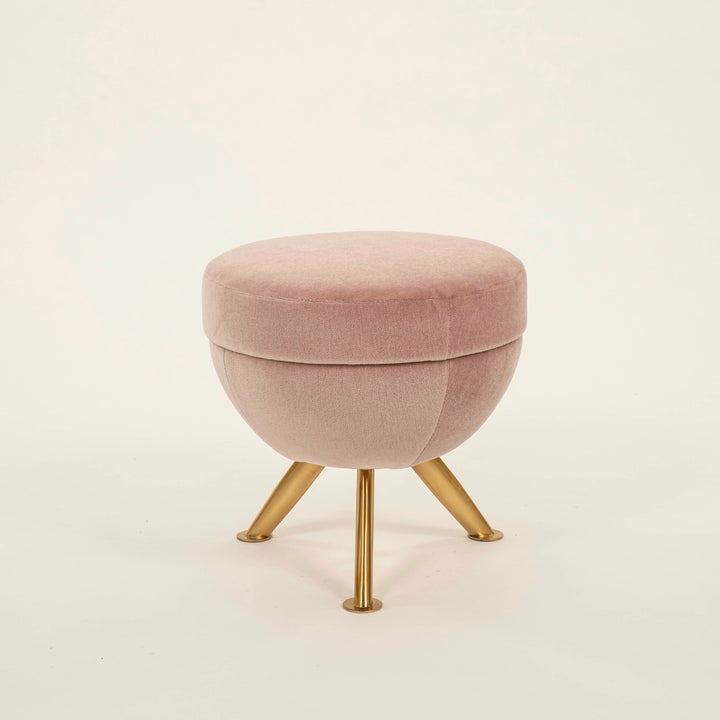 Contemporary Italian Round Brass Blush Mohair Ottoman