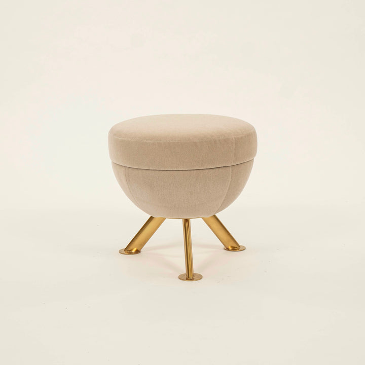 Contemporary Italian Round Brass Ecru Mohair Ottoman