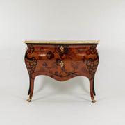Sienna marble top, marquetry inlay, gilt metal accents.