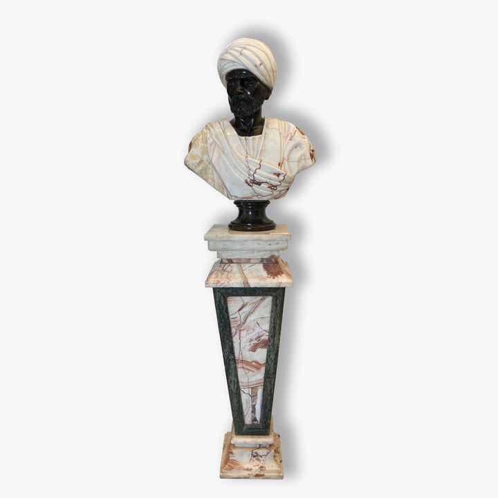 Cheik Arabe du Caire Carved Marble Bust on Pedestal