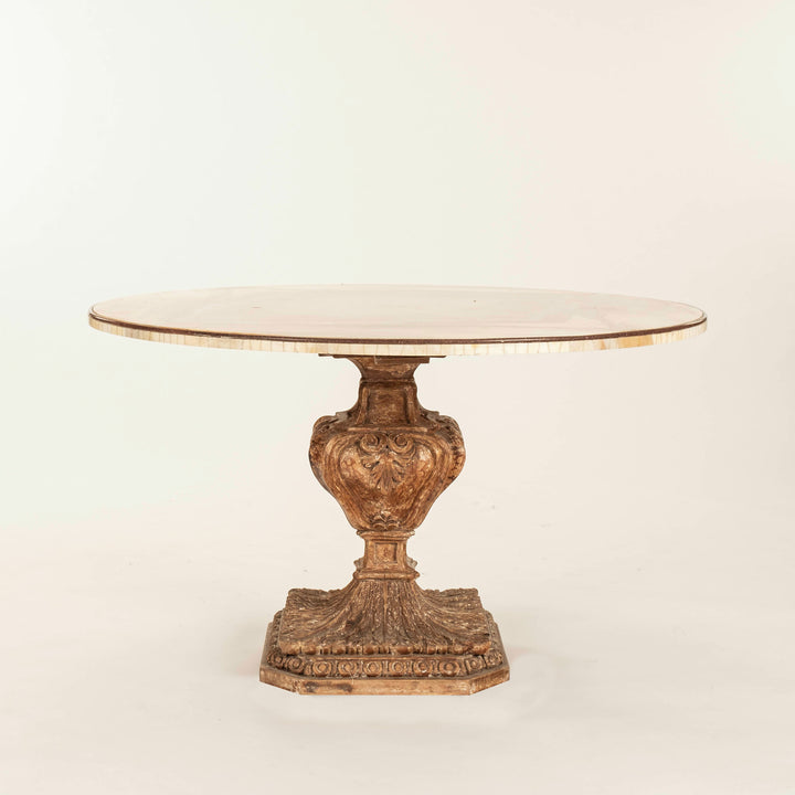 20th Century Italian Carved Wood Pedestal Dining Table with Onyx Top