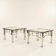 Pair Romeo Rega Style Chrome Brass & Glass Side Tables