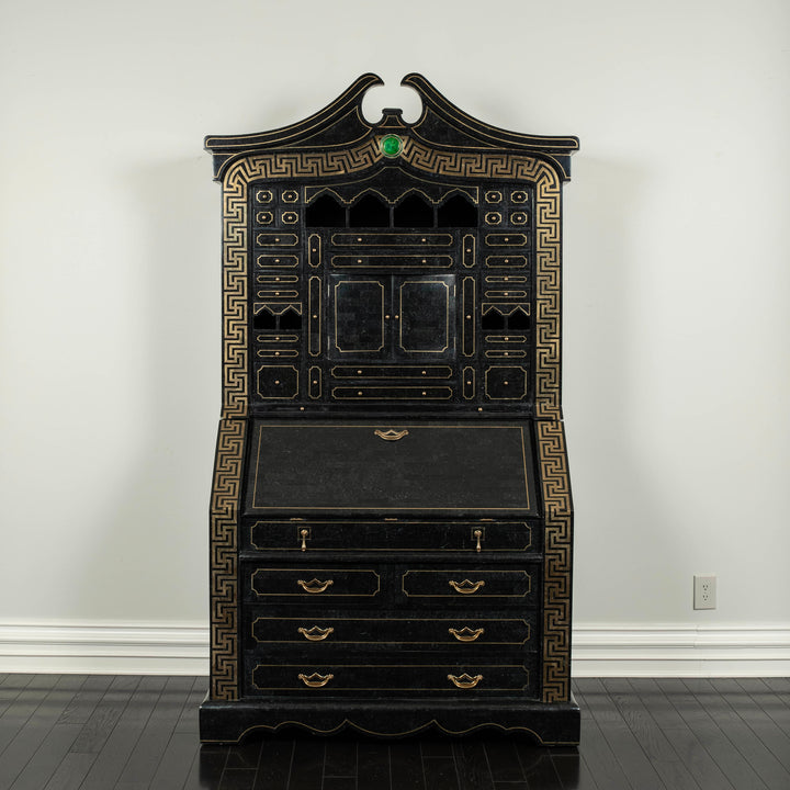 Tessellated Black Green Marble Brass Inlay Secretary Desk by Maitland Smith