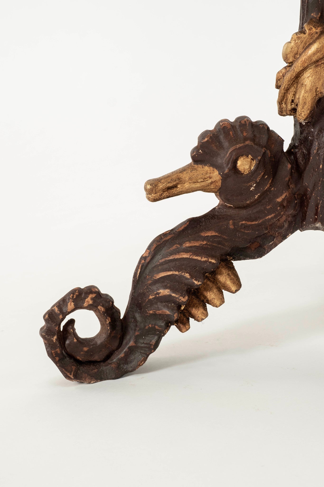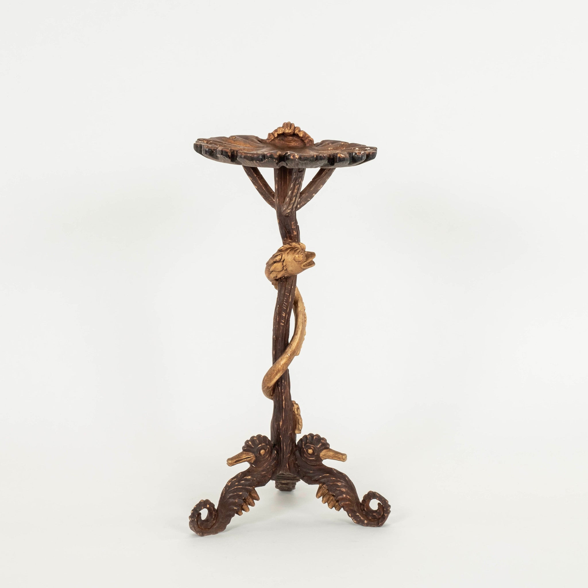 Seahorse Serpent Shell Grotto Black Gold Parcel Gilt Tall Pedestal Table