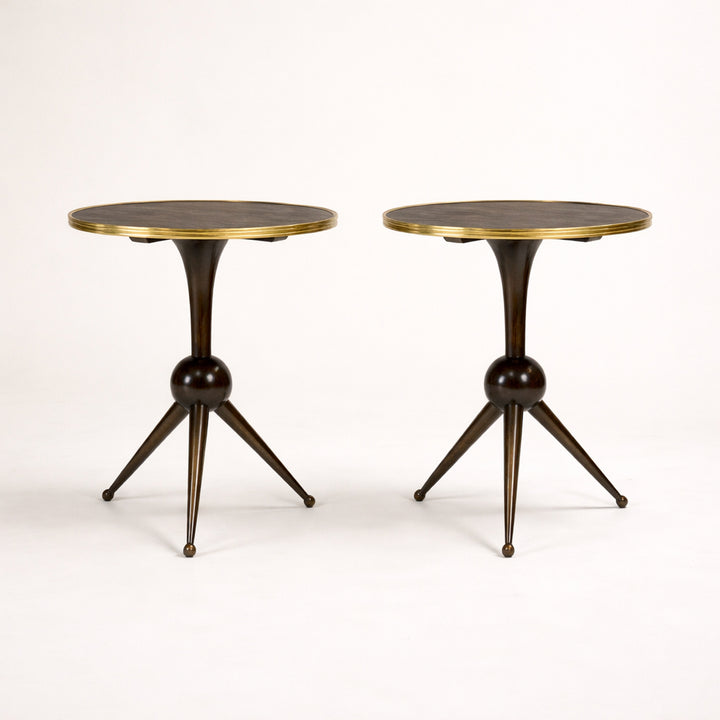 Pair Andre Arbus Style Black Cerused Oak Side Tables
