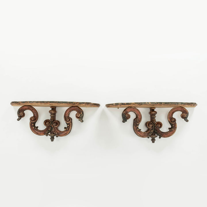 Pair 20th Century Italian Carved Polychrome Wall Shelves