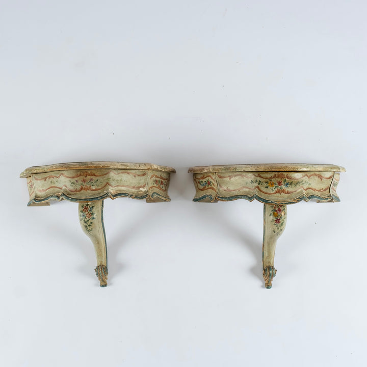 Pair of Early 20th Century Italian Wall Shelves with Drawers