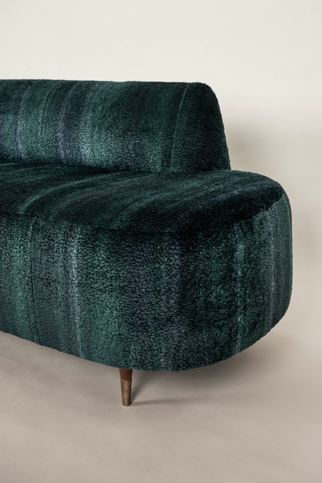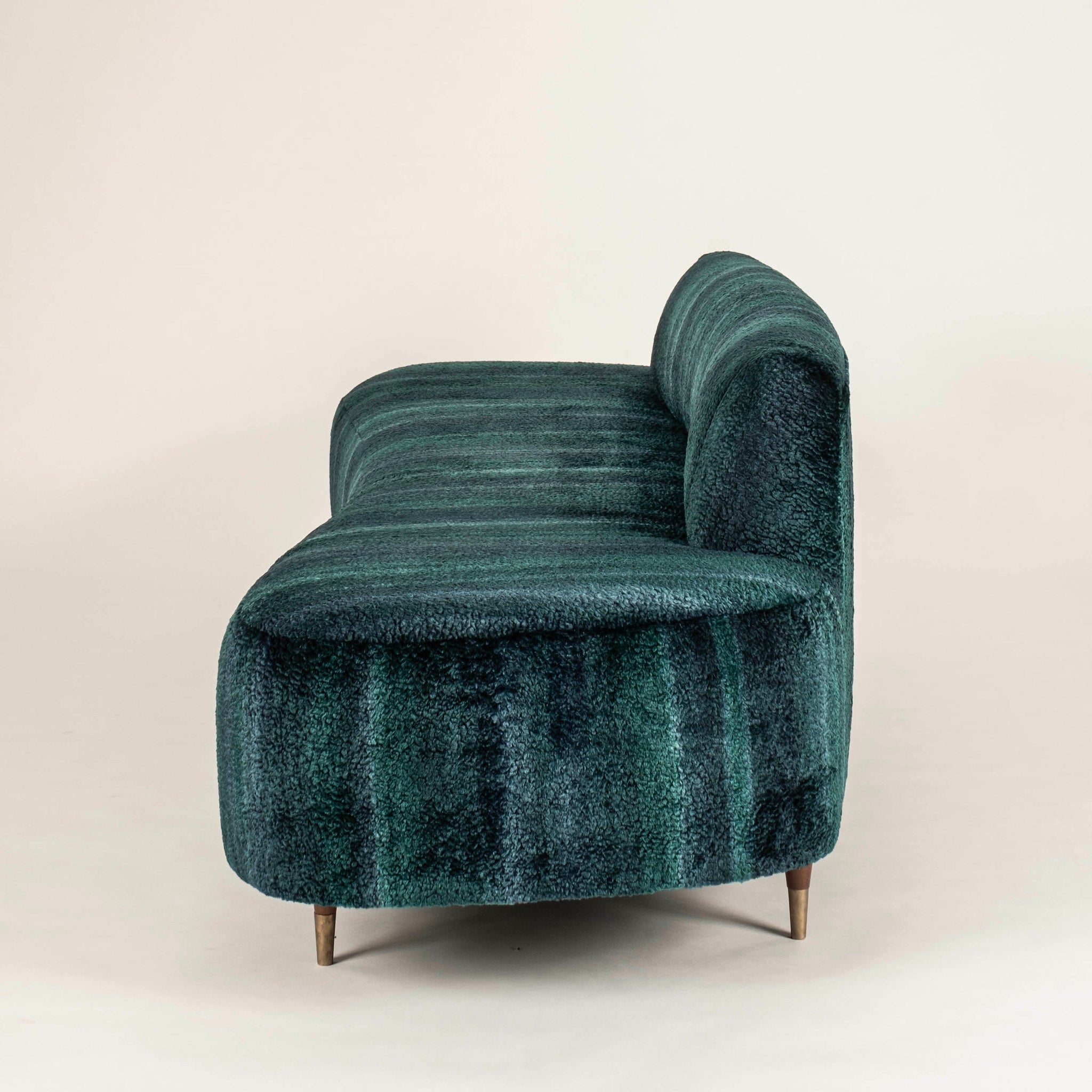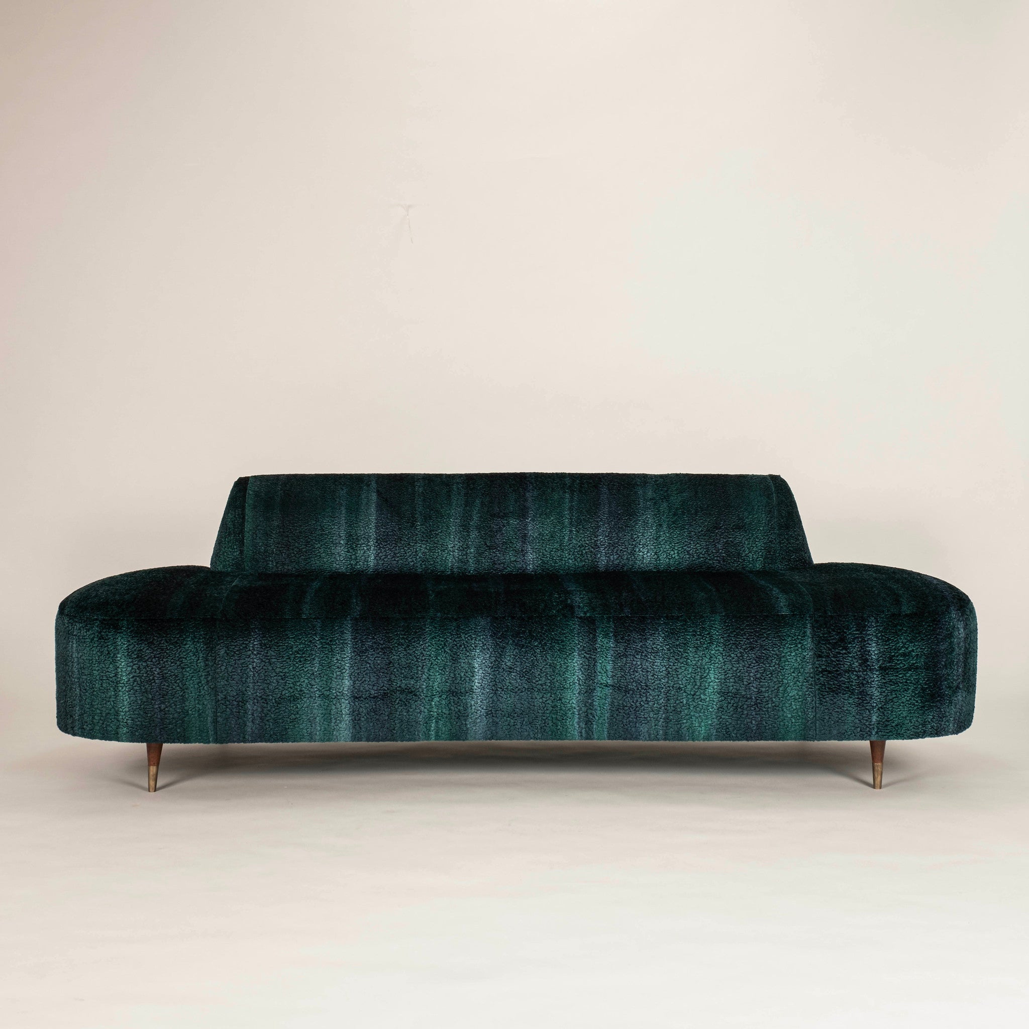 1960s Italian Ombre Peacock Cut Mohair Velvet Curved Sofa