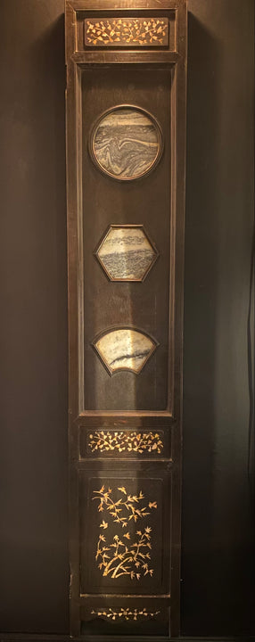 19th Century Chinese panel screen with stone and mother of pearl inlay.
