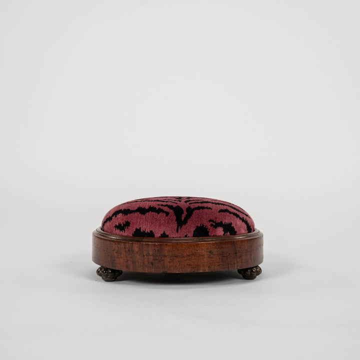 19th Century Scalamandré Red (Hot Pink) Tigre Velvet Round Footstool