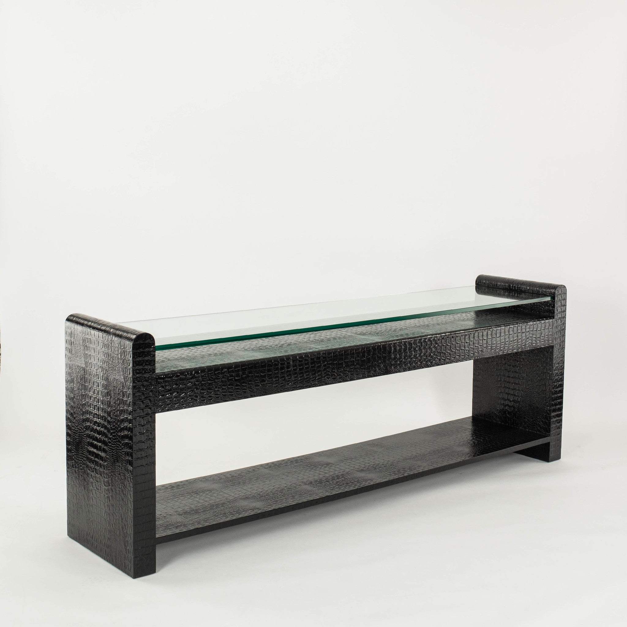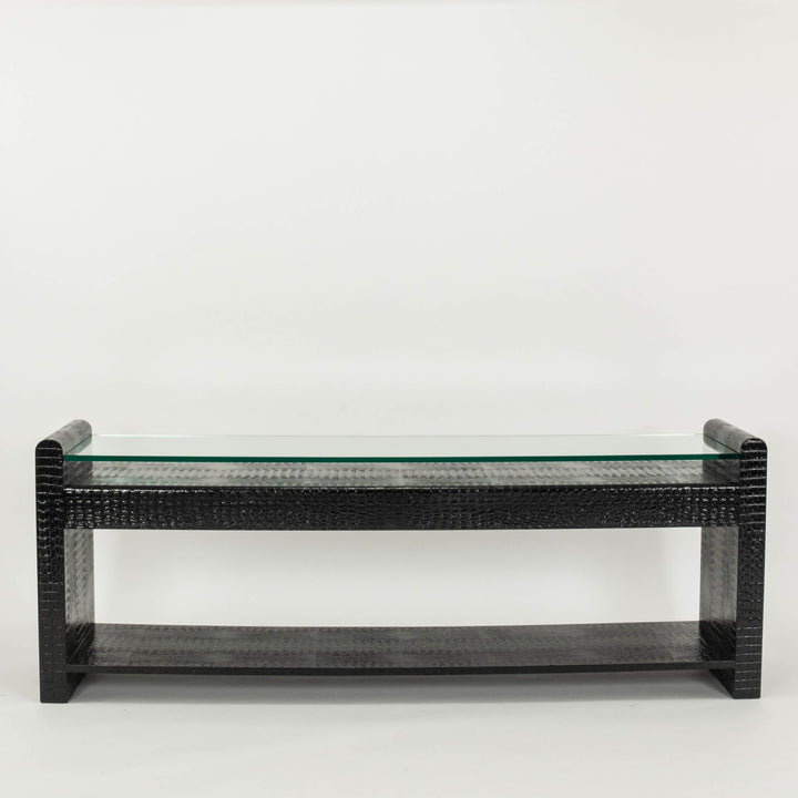 Black Crocodile Embossed Leather Glass Console