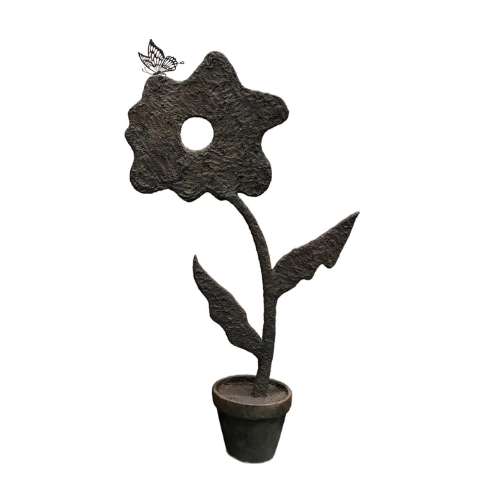 Black Silhouette Flower with Butterfly Urn Sculpture 67"H