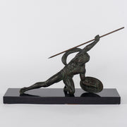 French Art Deco warrior bronze figure on marble base, circa 1930. Signed S. Melani.