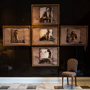 Five mixed media on cibachrome prints on paper with giltwood frames.