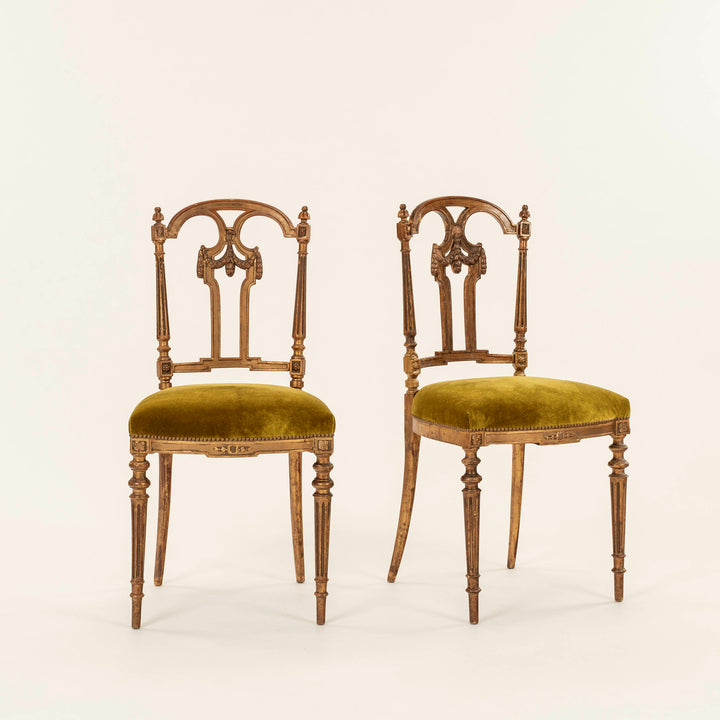 Pair French Regency Style Gold Chartreuse Velvet Music Chairs