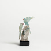 Zoom Green Parrots on Quartz Base with Tourmaline