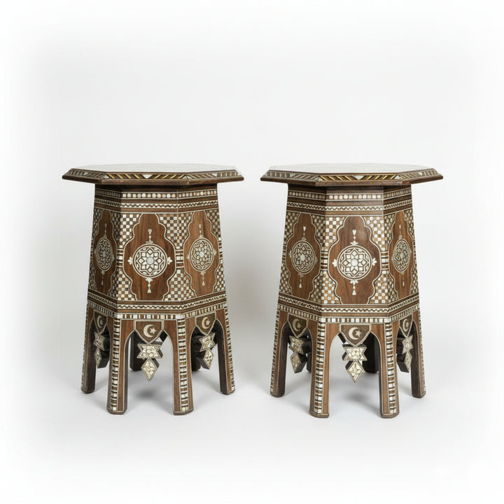 Pair Octagonal Moorish Inlaid Occasional Tables