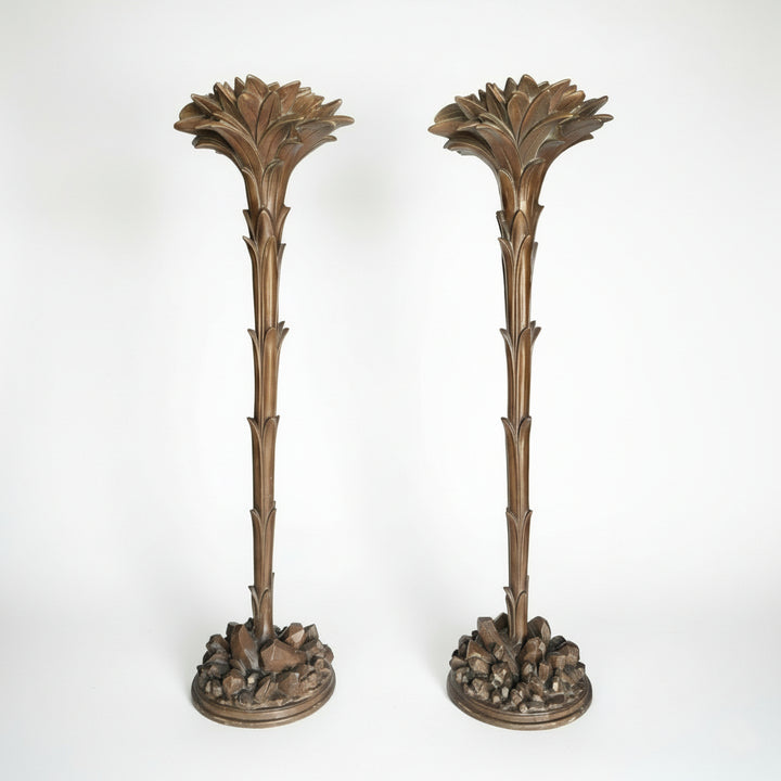 Pair Patinated Resin & Plaster Palm Torchieres in the Manner of Serge Roche