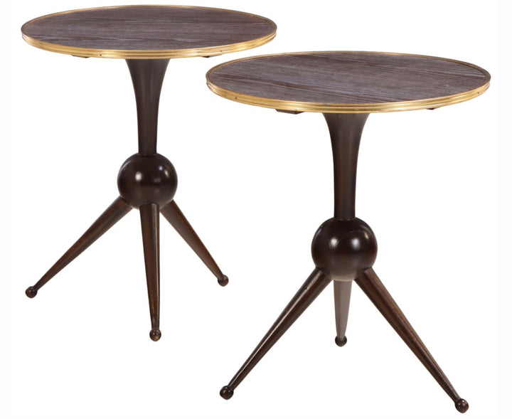 Pair Andre Arbus Style Round Black Cerused Oak Side Tables