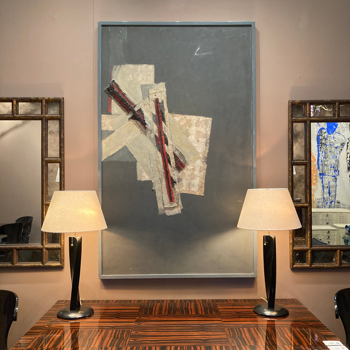 Pair Vintage Ebonzied Wood Lamps
