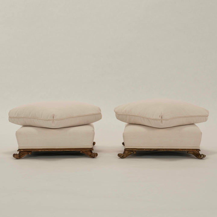 Pair 1940s Stacked Cushion Giltwood Ottomans