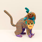 Signed Jimenez Oaxacan Wood Carving Of Two Monkeys