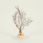 Black coral sea fan, tourmaline, optical calcite, 19th Century French bronze doré fragment.