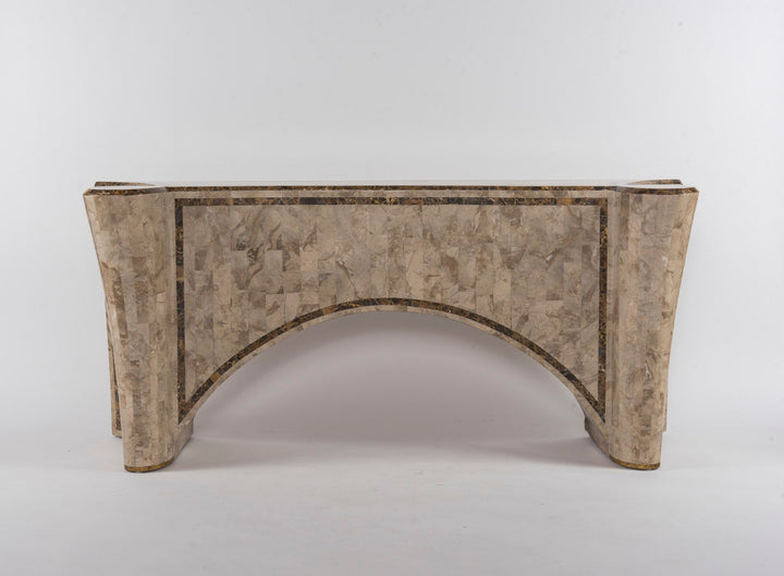 Vintage tessellated marble console table with brass inlay detail, circa 1980.