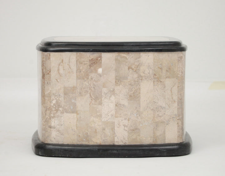 Vintage tessellated stone and marble table base. Beige, taupe and black tones.