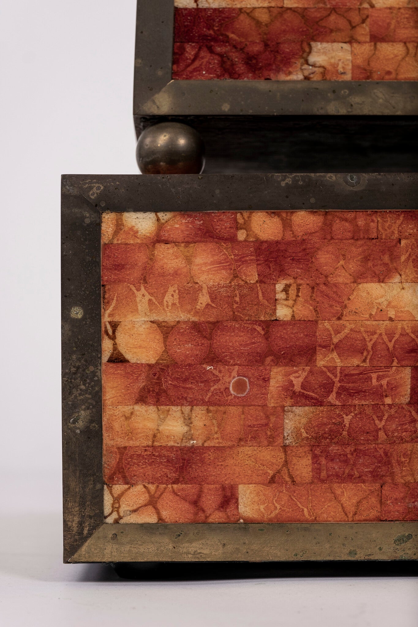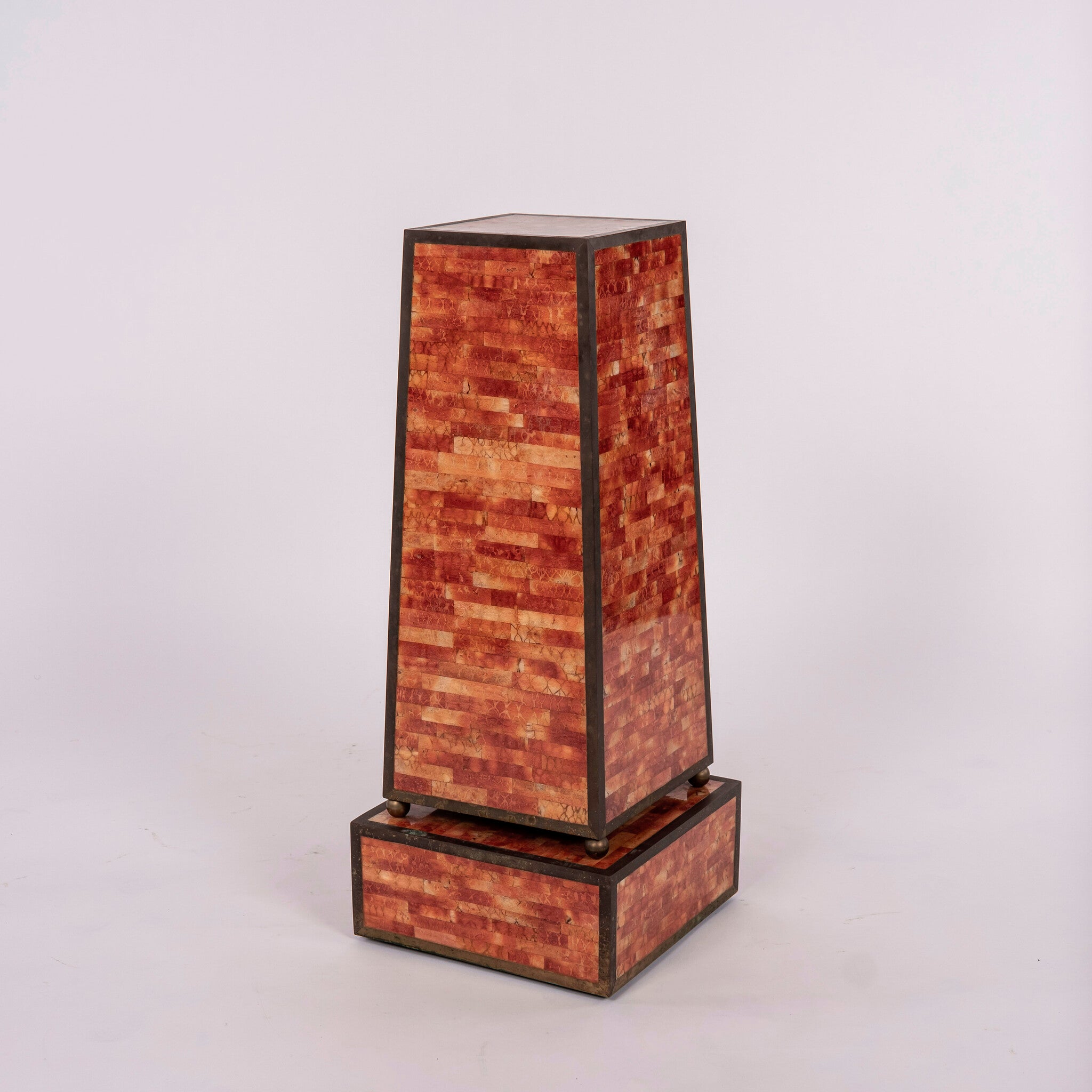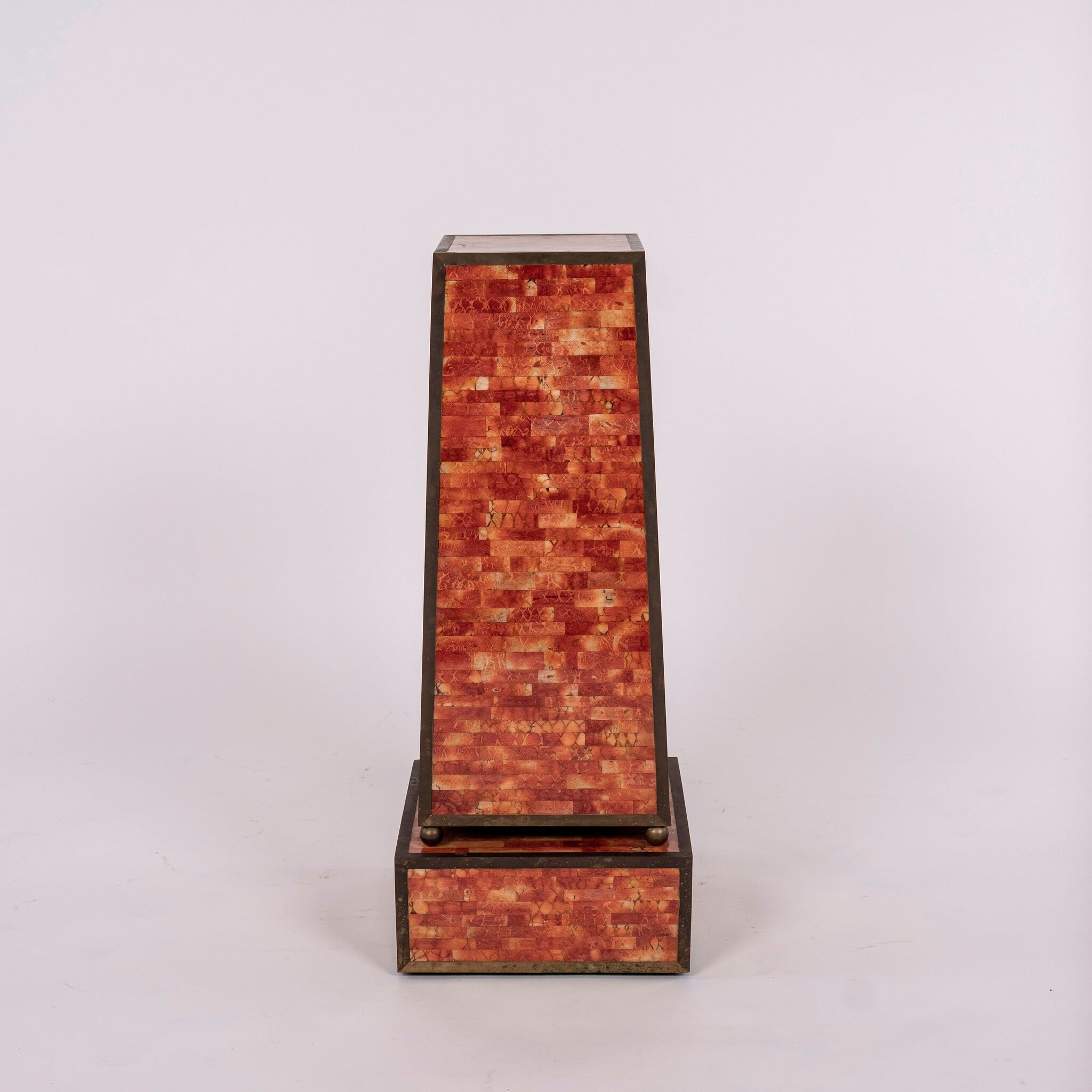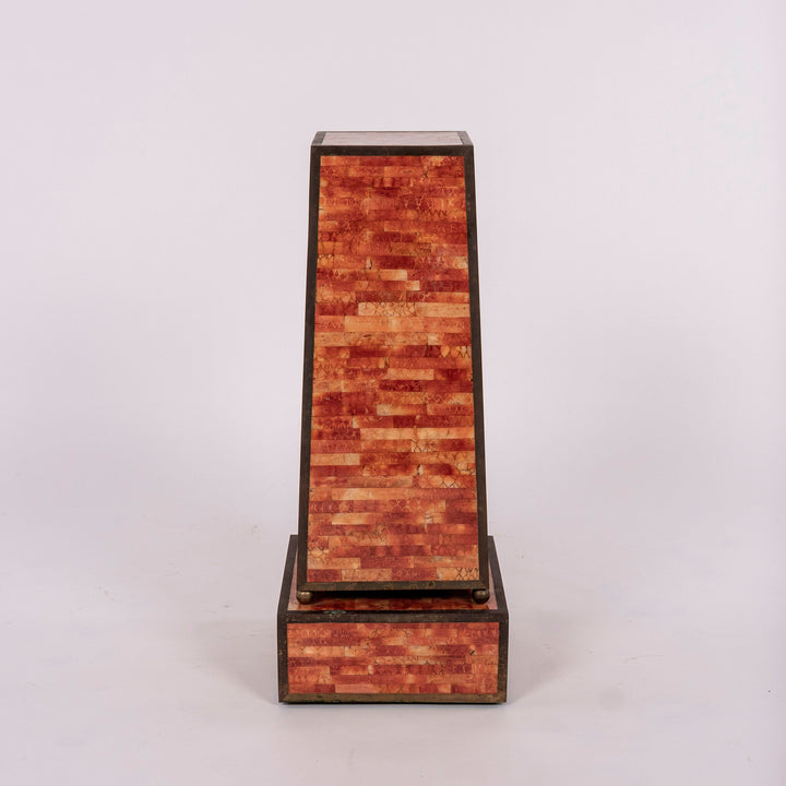 Vintage Maitland Smith Tessellated Stone Pedestal with Brass Trim
