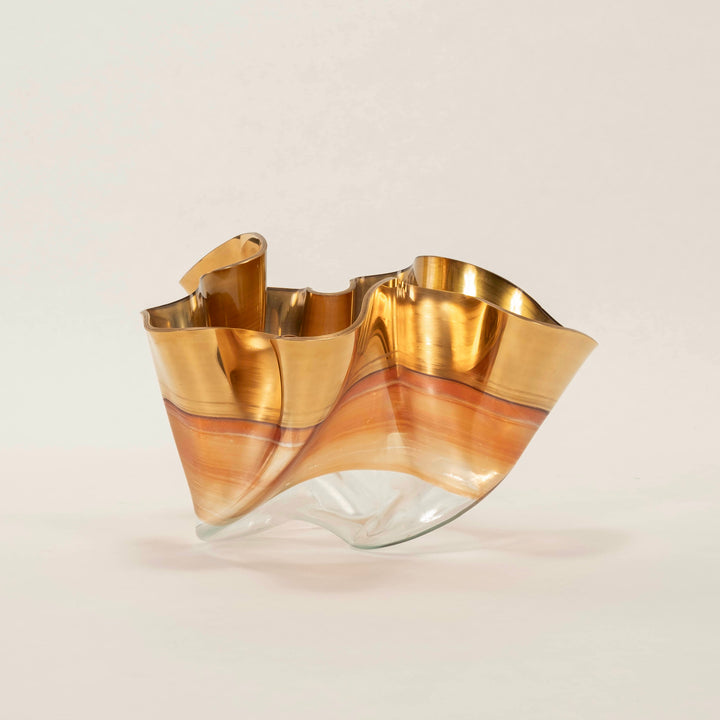 Zoom Gold Banded Art Glass Sculpture Bowl by Laurel Fyfe