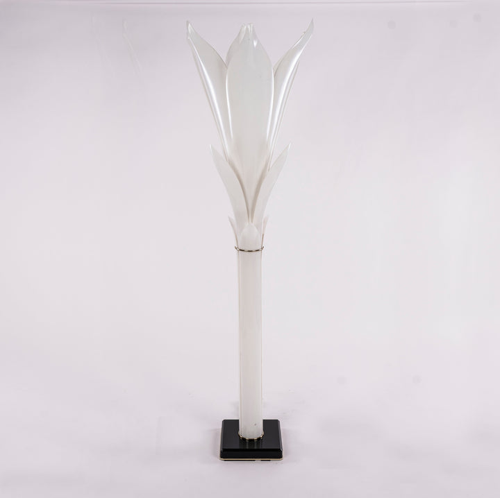 1970s Rougier white acrylic palm floor lamp on black marble base with brass detail.